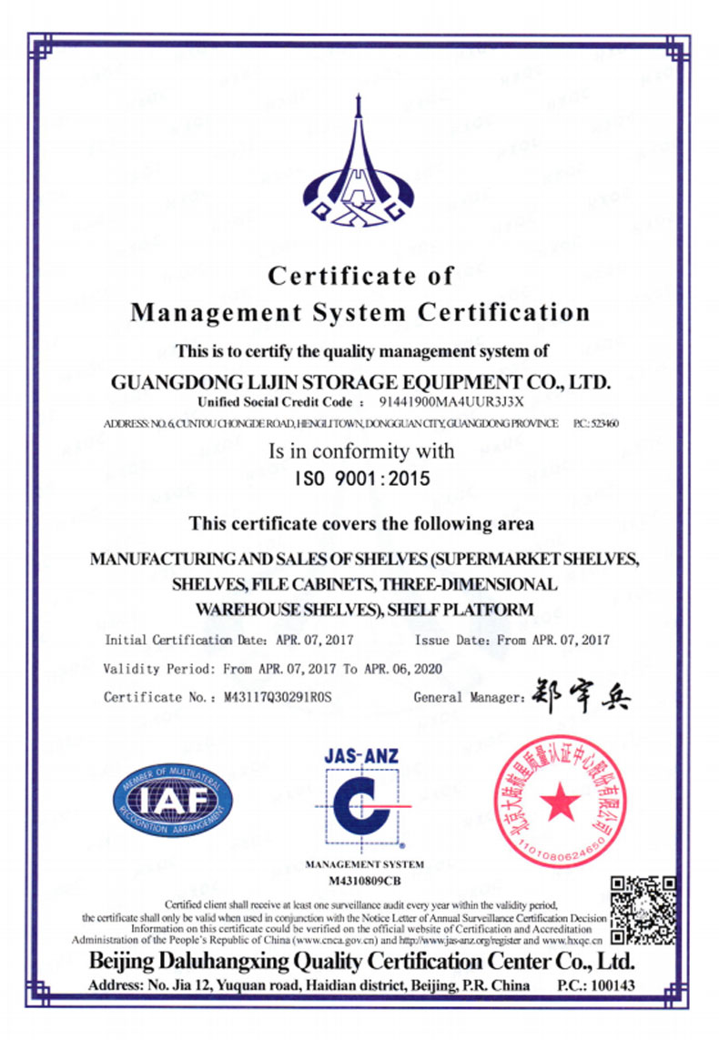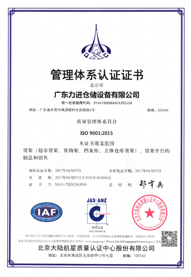 ?2016年5月 更名為廣東力進(jìn)倉儲(chǔ)設(shè)備有限規(guī)公司,搬遷至東莞市橫瀝鎮(zhèn)村頭工業(yè)區(qū),占地面積12800平方米。