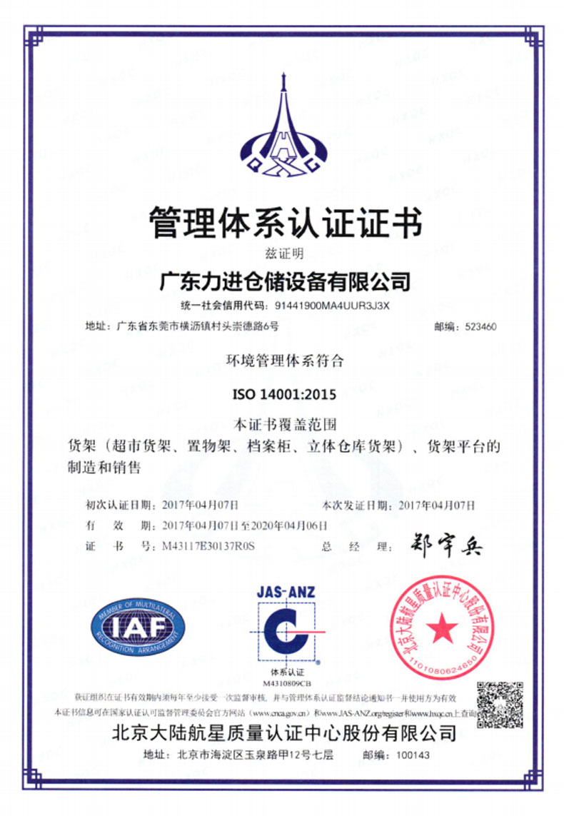 ? 2014年3月 成立香港力進(jìn)倉儲(chǔ)設(shè)備有限公司,致力開拓海外市場(chǎng)。